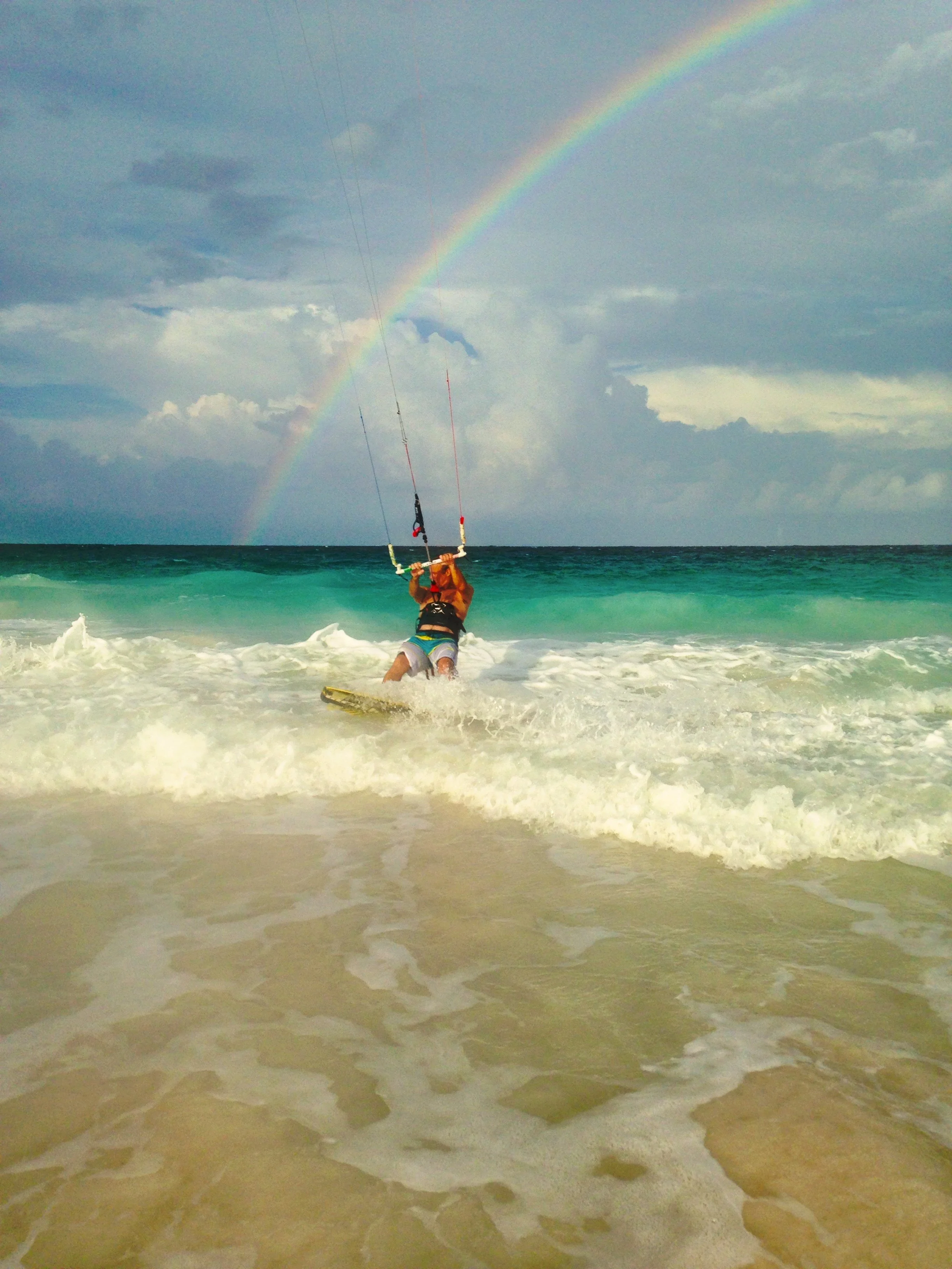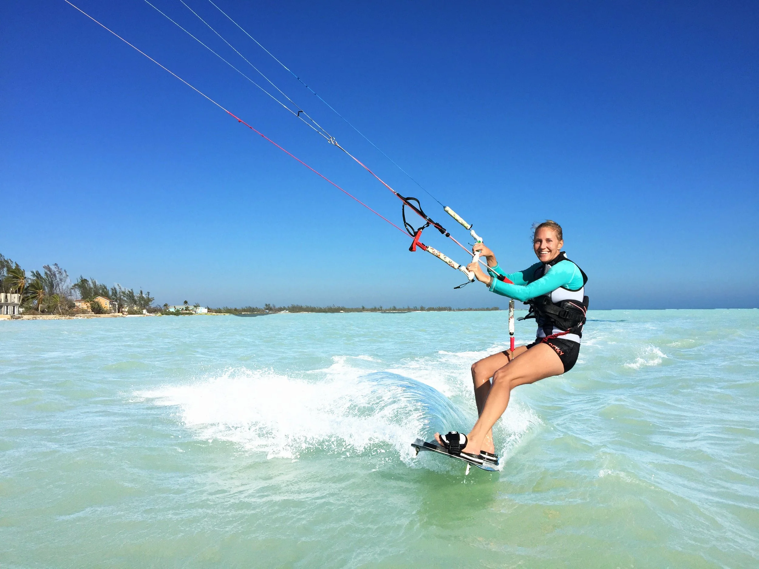 At the very least, wear a rashguard for sun protection. Many kiters here also use surf hats with chin straps and even sport sunglasses—the glare bouncing off Bahamian water is no joke.